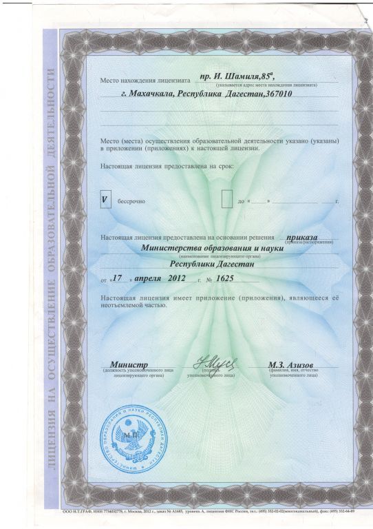 | Адрес местонахождения образовательной организации* | 367030,г.Махачкала, пр.И.Шамиля, 85 а |